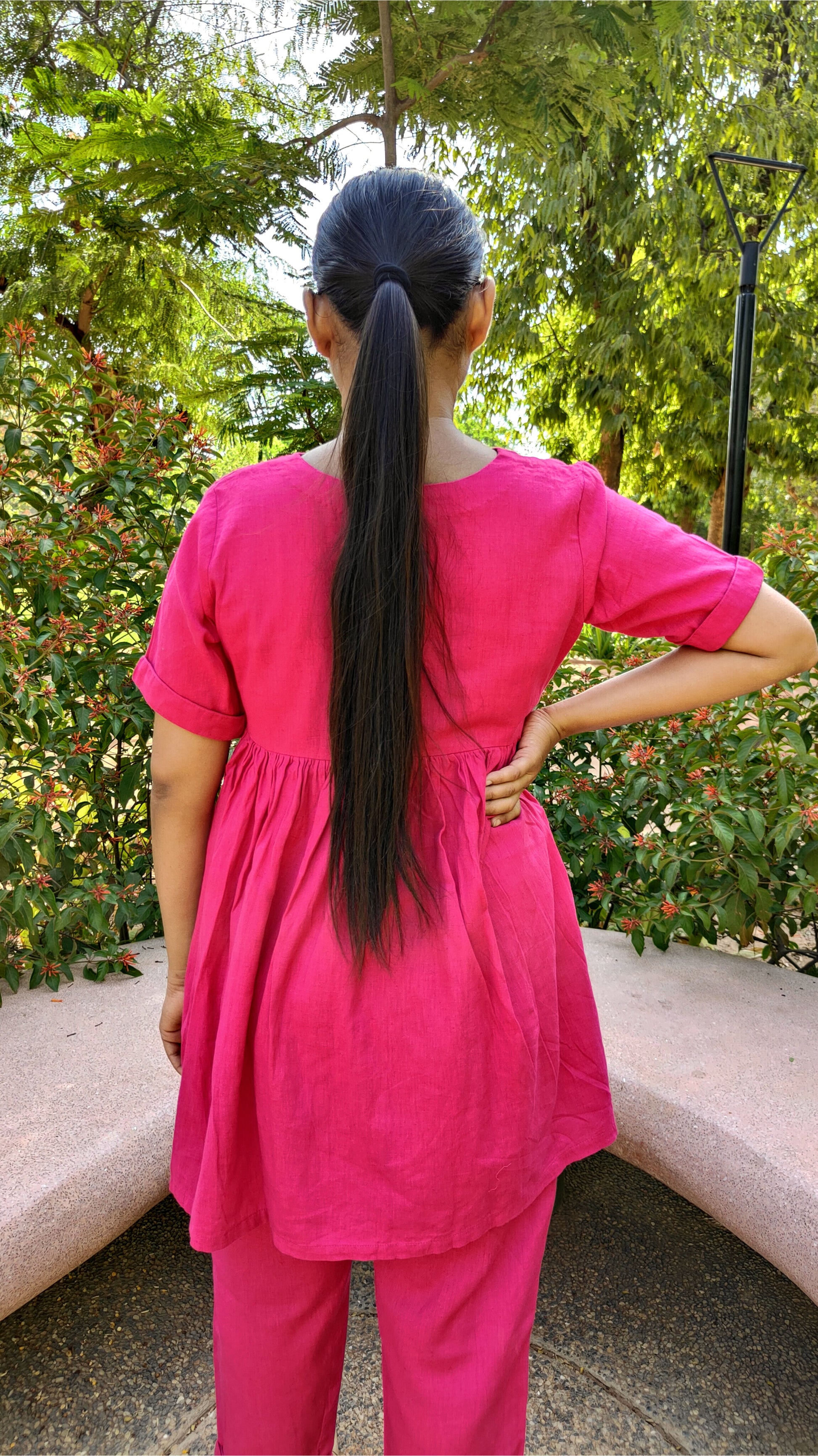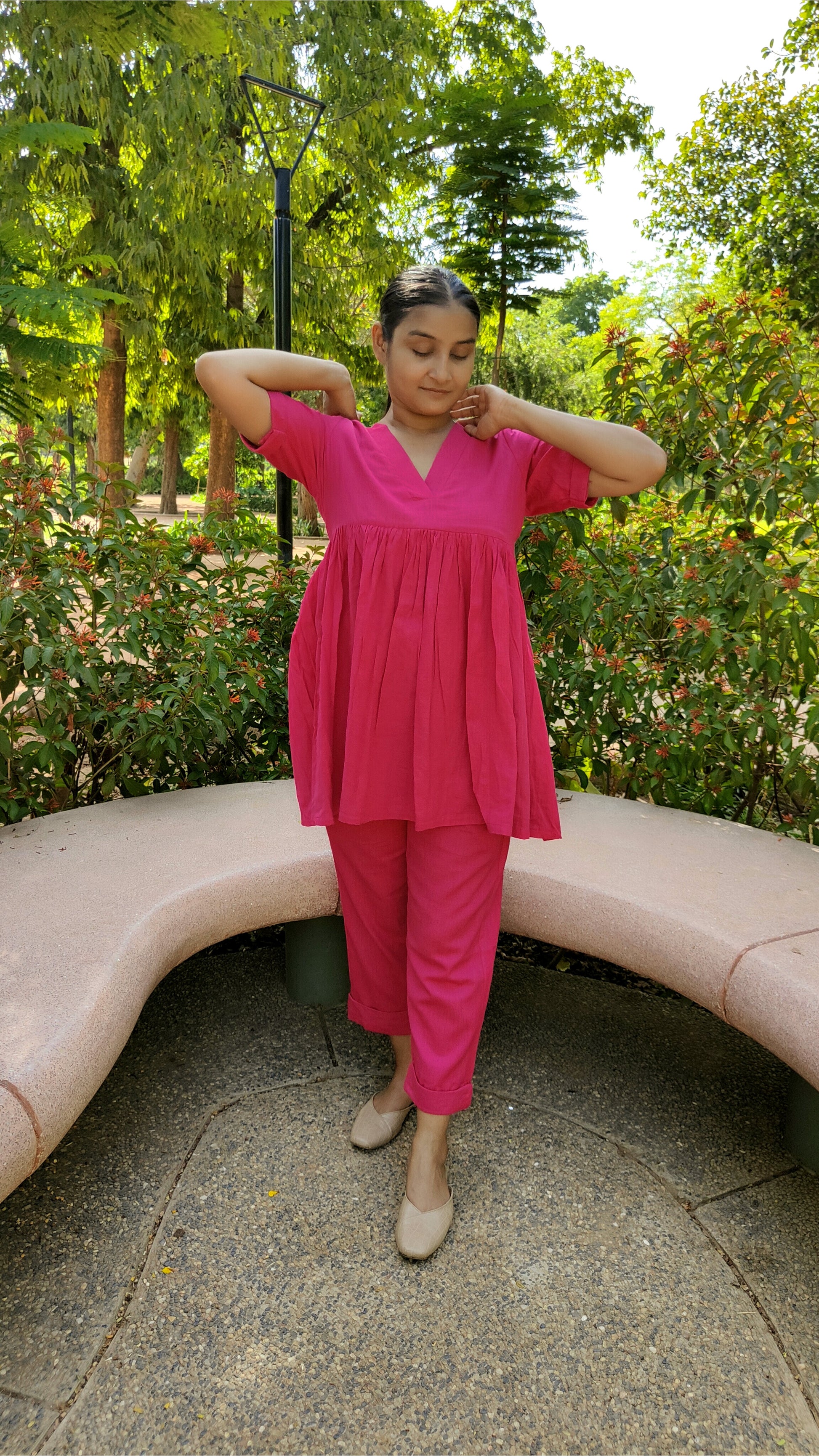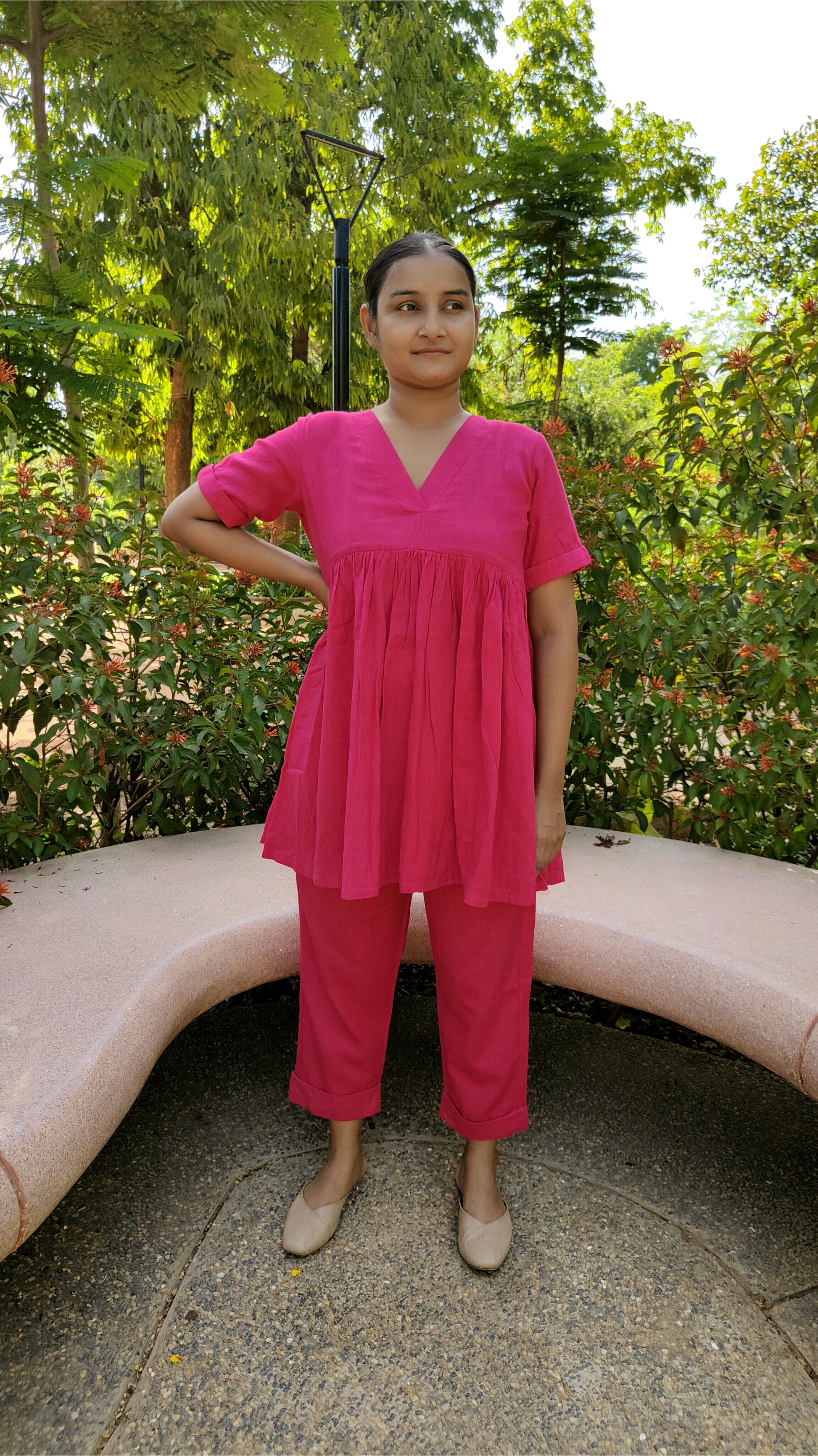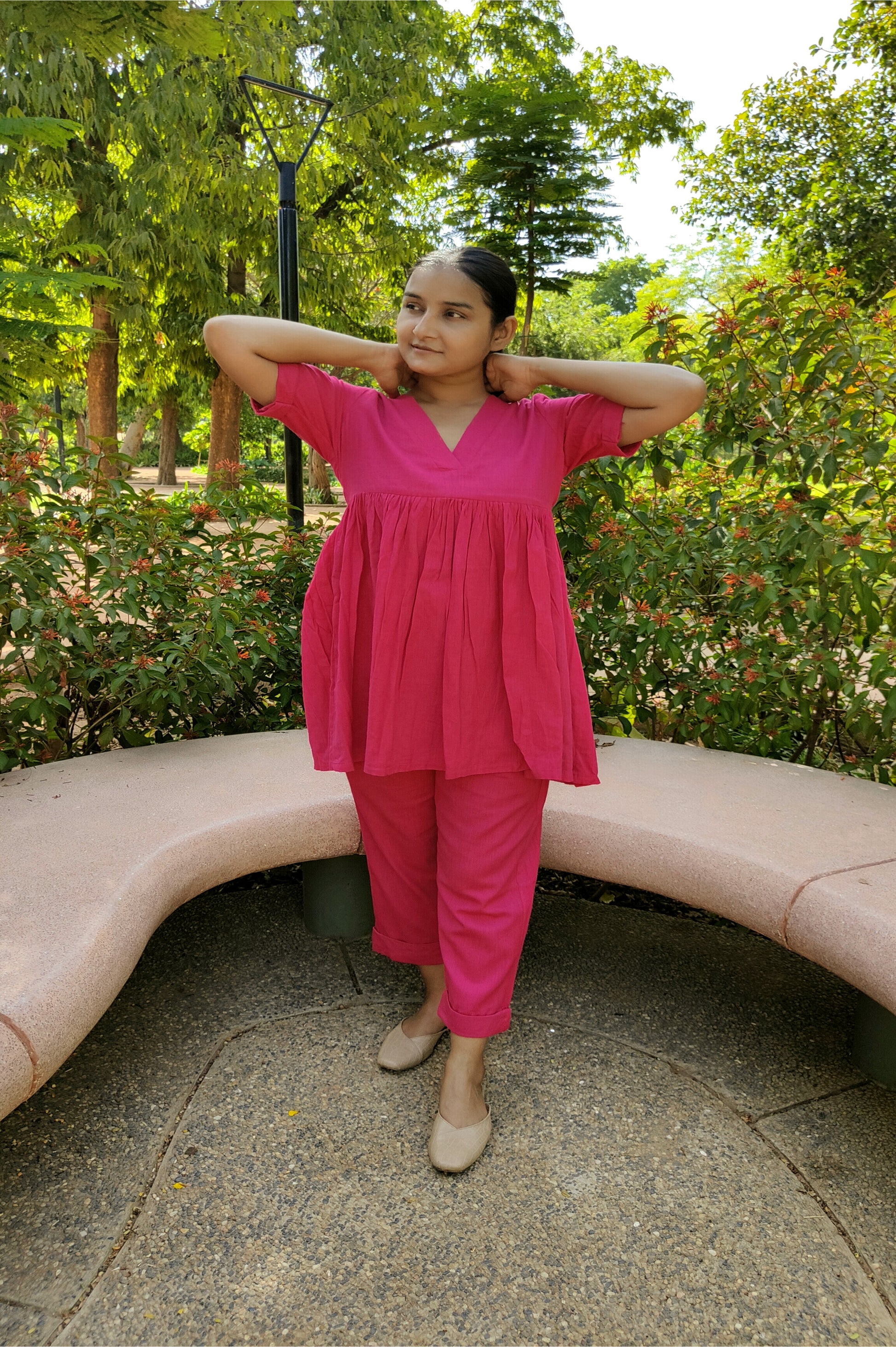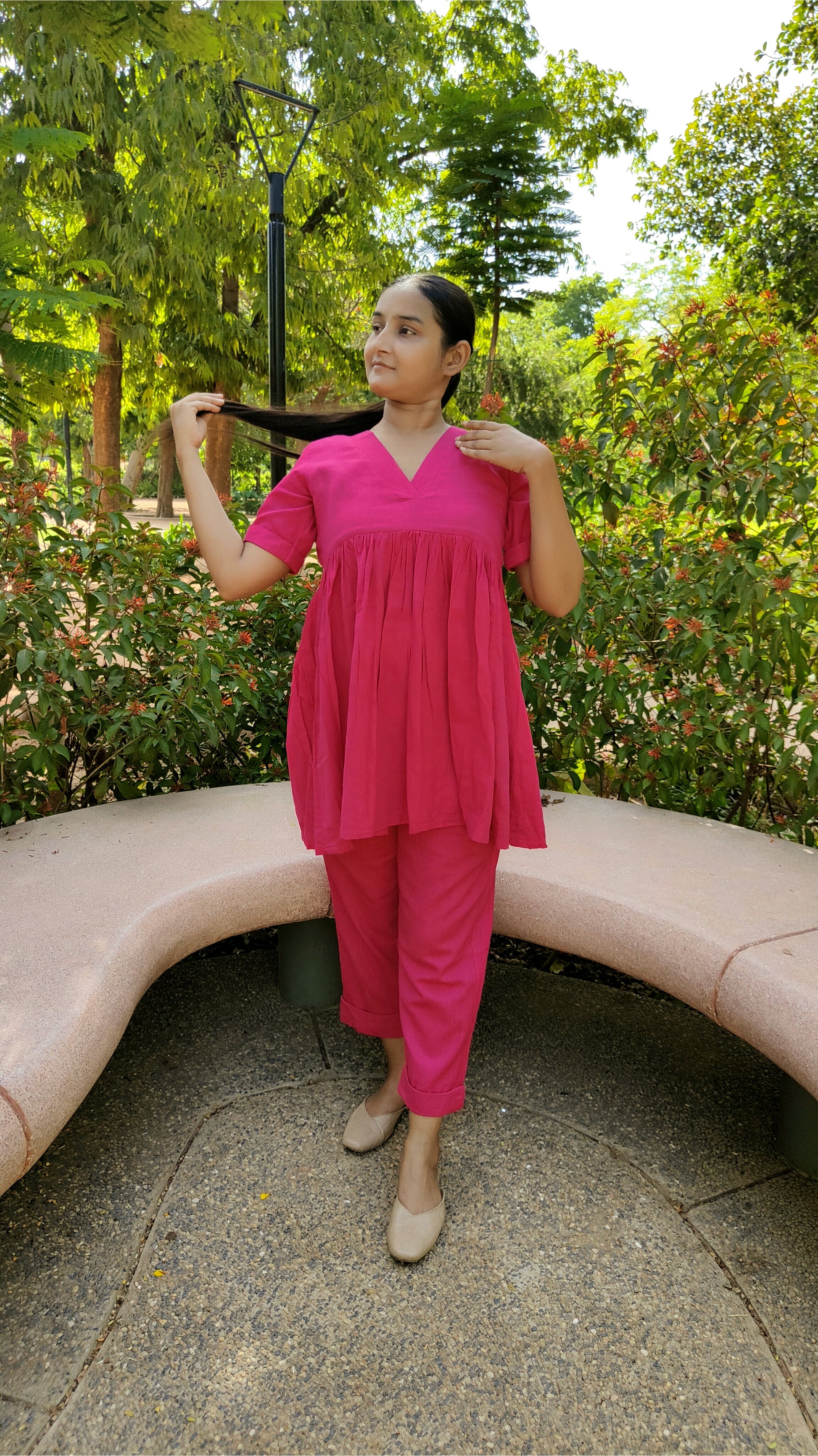 The vibrant and striking Hot Pink Coord Set in Flex Cotton is an ensemble that effortlessly combines style and softness. The top can be worn alone to create a cute summer dress look.