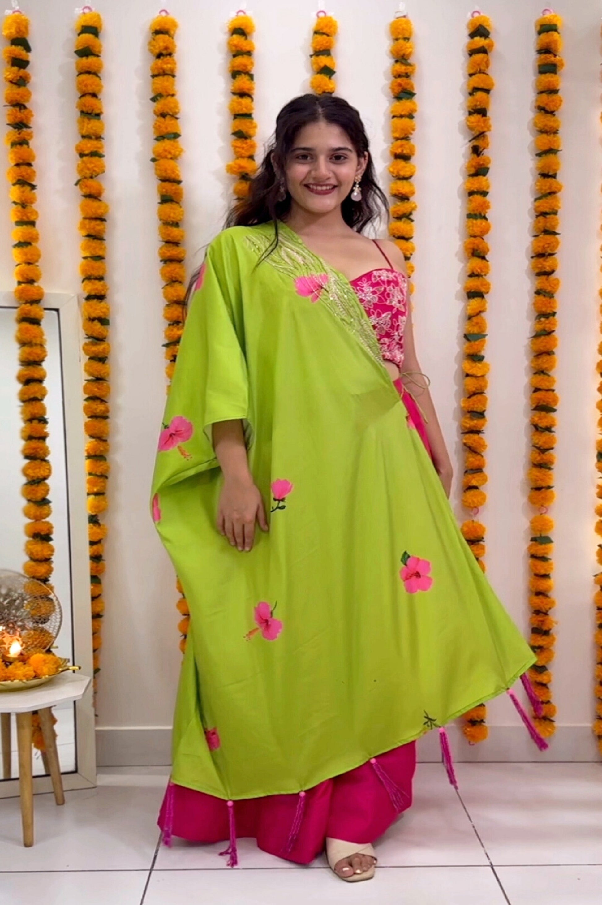 Set Includes: Cape, Spaghetti Blouse and Pallazo